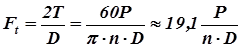 При этом тангенциальную (окружную или касательную) силу можно вычислить по следующей формуле: