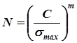 где Ft – окружная сила, передаваемая ремнем, Н; sFt – расчетное полезное напряжение, МПа; b и d - ширина и толщина ремня, мм. При этом допускаемое полезное напряжение определяется исходя из опытных данных, полученных при стандартном испытании ремня, с введением поправок на пространственное расположение передачи, угол обхвата на малом шкиве и скорость движения ремня (уменьшение сцепления центробежными силами), на режим работы передачи. Обычно такой расчет предполагает минимальный срок службы передачи (ремня) 2000 ч. Однако, экспериментально установлено, что для ремней не удается установить предел неограниченной выносливости, а ресурс ремня, выраженный числом пробегов за срок службы N, связан с наибольшим напряжением, вычисленным по зависимости (2.31), соотношением