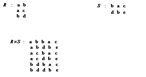 3. Декартово произведение. Пусть R отношение k1 арности, а S отношение k2 арности. Декартовым произведением называют множество кортежей длины k1+ k2 таких, что первый принадлежит R, а последний к S. Пример.