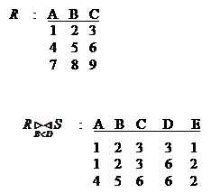 Очень часто используется операция соединения, и её естественные разновидности. Пусть R отношение арности k1, а S арности k2. Пусть Операция соединения определяется через селекцию: