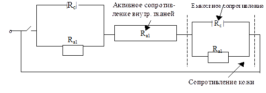 Кожа действует как конденсатор (большое сопротивление).