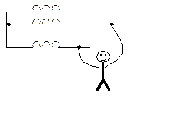 Схема двухполосного прикосновения. Простейшая схема электрического сопротивления человека. Пороговые значения токов.