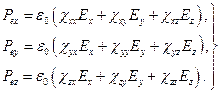 где Вектор поляризации совпадает по направлению с вектором напряженности поля и связан с ним соотношением (13.3) только в электрически изотропной среде. Диэлектрическая восприимчивость анизотропной среды (например, кристаллической) — величина тензорная. Ее значение различно вдоль разных направлений. В такой среде связь между векторами