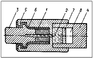 в) Предохранители с жидкометаллическим контактом. В таком предохранителе Рис. 16.5. Электроизоляционная трубка 1 имеет капилляр, заполненный жидким металлом 2,герметично закрытым электродами 3,4 и корпусом 5 с уплотнением 6, имеет специальное демпфирующее устройство 7, 8. При протекании большого тока жидкий металл и нем испаряется, образуется паровая пробка и эл. цепь размыкается. После определенного времени пары металла конденсируются и контакт восстанавливается. Предельный отключаемый ток таких предохранителей достигает 250 кА при напряжении 450 В переменного тока. Предохранители работают многократно с большим токоограничением. г) Быстродействующие предохранители для защиты полупроводниковых приборов. Малая тепловая инерция, быстрый прогрев полупроводникового перехода крайне затрудняют защиту мощных диодов, тиристоров и транзисторов при токовых перегрузках. Обычные типы предохранителей и автоматических выключателей из-за относительно большого времени срабатывания не обеспечивают защиту полупроводниковых приборов при КЗ. Для выполнения этой задачи разработаны специальные быстродействующие предохранители. Плавкая вставка выполняется из серебра, имеет перешеек с минимальным сечением и охлаждается кварцевым наполнителем под большим давлением. С целью улучшения охлаждения вставка выполняется из ленты. При больших токах имеет несколько параллельных ветвей Для уменьшения времени горения дуги плавкая вставка имеет большое число перешейков.
