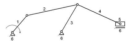 1.Начертить структурную схему механизма. 2.Обозначит все подвижные и неподвижные звенья механизма. Начать обозначение с ведущего звена– кривошипа и далее по порядку. Найти количество подвижных звеньев п. 3.Заглавными буквами латинского алфавита обозначить все кинематические пары. Найти количество кинематических пар p1 и р2. 4.Определить степень подвижности механизма. 5.Отсоединить от механизма наиболее отдаленную от ведущего звена группу Ассура II класса, так чтобы оставшийся механизм продолжал работать, а степень его подвижности W не менялась. Определить вид, порядок, класс и степень подвижности данной группы Ассура. Записать структурную формулу группы Ассура. 6.Продолжать отсоединять от механизма группы Ассура до тех пор, пока не останется начальный механизм. 7.Определить класс и степень подвижности начального механизма. Записать структурную формулу начального механизма. 8.Записать структурную формулу всего механизма. 9.Определить класс механизма. Выполнить структурный анализ механизма.