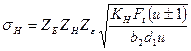 Заменив в формуле Ft = 2 103Т1/d1; b2 = ψbааw; d1 = 2аw/(u ± 1), последовательно получим