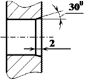 Размеры фасок под углом 450 наносят так, как показано на рис.4. Размеры фасок под другими углами наносят так, как показано на рис.5. Если глубина фаски меньше 1 мм, то на чертеже она не вычерчивается (рис.6).