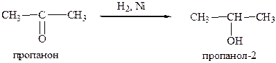 5. Прямое присоединение СО и Н2 к алкенам (оксосинтез). 6. Окисление алкенов Основные химические свойства альдегидов и кетонов связаны с наличием в их структуре карбонильной группы, для которой характерна полярность двойной связи углерода с кислородом. В кетонах полярность связи понижается сильнее, чем в альдегидах благодаря электронным компенсационным эффектам алкильных радикалов R, поэтому реакционная способность альдегидов выше, чем у кетонов. На схемах показано распределения электронной плотности в карбонильной группе альдегидов и кетонов. 1.Реакции присоединения по двойной связи карбонильной группы 1.1. Присоединение водорода протекает на никелевом катализаторе с разрывом двойной углерод – кислородной связи.