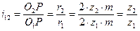 зубчатого колеса Окружность вершин - окружность, описанная из центра колеса и ограничивающая вершины зубьев. Окружность впадин - окружность, описанная из центра колеса и ограничивающая его впадины со стороны колеса. Делительная окружность - окружность, на которой расстояние между одноименными сторонами двух соседних зубьев равно шагу зуборезного инструмента. Делительные окружности совпадают с начальными, если межосевое расстояние пары зубчатых колес равно сумме радиусов делительных окружностей. Модуль - значение следует выбирать по СТ СЭВ-310-76. Этим стандартом дан ряд значений от 0,05 до 100 мм: - 1 ряд (предпочтительный): 1; 1,25; 1,5; 2; 2,5; 3; 4; 5; 6; 8; 10; 12; 16; 20; 25 и т. д.;- 2 ряд: 1,125; 1,375; 1,75; 2,25; 2,75; 3,5; 4,5; 5,5; 7; 9; И; 14; 18; 22 и т. д. Окружной шаг зубчатого зацепления р – есть расстояние между одноименными точками двух соседних зубьев колеса, измеренное по дуге делительной окружности. Высотой зуба h – называется радиальное расстояние между окружностью вершин и окружность впадин. Разница в высоте ножки зуба одного колеса и высоте головки зуба другого необходима для образования радиального зазора:
