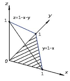 Вычислить по области , ограниченной координатными плоскостями и плоскостью (см.рис.17).