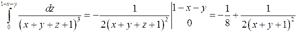 Последовательно интегрируем, начиная с внутреннего интеграла