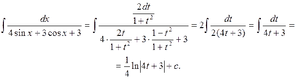 Замечание. Универсальная подстановка во многих случаях приводит к сложным вычислениям, так как при ее применении sinx и cosx выражаются через t в виде рациональных дробей t2.