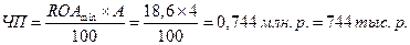 Пример. Стоимость активов фирмы-производителя продукции – 4 млн. р.; Планируемая выручка от продаж – 3 млн. р. в год. Себестоимость единицы продукции – 424,5 р. Установленная минимальная рентабельность активов - 18,6%. Сначала определяем сумму чистой прибыли от продаж