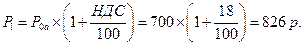 Товар продается по отпускной цене, которая, кроме цены изготовителя, включает косвенные налоги (акциз и налог на добавленную стоимость - НДС). Пусть сумма акциза равна 70 р. Ставка НДС – 18%. Тогда отпускная цена с акцизом составит: Р0а = 630 + 70 = 700 р., а оптовая отпускная цена: