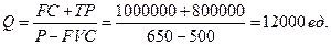 TС = AVC×Q + FC = 500×13846 + 1000000 = 7923000 р.
