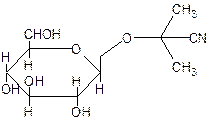 Амигадлин образует кристаллы горького вкуса, легко растворимы при нагревании в воде и спирте. При кислотном гидролизе амигдалин образует две молекулы глюкозы, молекулу бензальдегида и молекулу синильной кислоты. Амигдалин в значительных количествах содержится в семенах горького миндаля (2,0 – 3,5%), в косточках персиков (1,8 – 3,6%), абрикосов (1,0 – 1,8%), вишен (0,8 – 1,0%), слив (до 1,8%). Сам амигдалин не ядовит, но при ферментативном и кислотном гидролизе выделяет ядовитую синильную кислоту. При извлечении масла из косточковых прессованием или экстракцией может образовываться свободная летучая очень ядовитая синильная кислота. Поэтому при переработке косточковых необходимо принимать соответствующие меры предосторожности. Небольшое количество синильной кислоты попадает в масло, откуда она может быть удалена при рафинации. Линамарин С10Н17NО6 состоит из остатков глюкозы и ацетонциангидрина и имеет следующее строение: