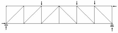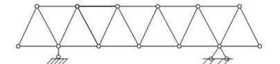 Таким образом, фермы могут быть использованы для перекрытия больших пролетов при действии высоких нагрузок, когда использование балок сплошного сечения оказывается невыгодным или невозможным. Как и при изгибе балки на двух опорах под действием нагрузки, направленной вниз, стержни верхнего пояса балочной фермы будут сжатыми, а нижнего - растянутыми. В консольной ферме (рис.4.10) ситуация будет обратной. Узлы фермы, как правило, конструктивно выполняются жесткими. Однако, как показал опыт расчетов, напряжения в стержнях ферм, определенные с учетом жесткости узлов, и напряжения, определенные по шарнирной схеме, обычно отличаются не более, чем на несколько процентов. Поскольку выполнять расчет во втором случае значительно легче, жесткостью узлов фермы пренебрегают и расчет ведут по шарнирной схеме. Иными словами, при расчете фермы все ее узлы считают идеальными шарнирами.