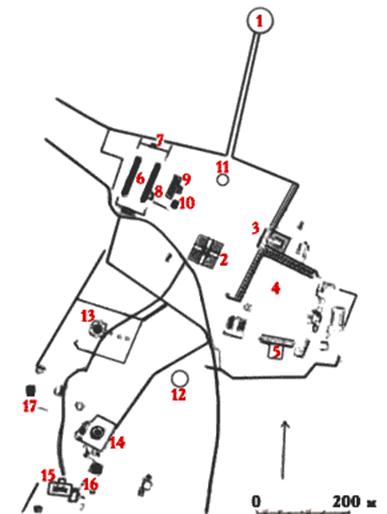 К западу от местности Пуук расположены руины города Чичен-Ица, здания дотольтекского периода (югу от основной храмовой группы) которого близки по стрилю к группе Пуук. Храм-башня Караколь (Улитка), вероятно, использовался как обсерватория. Здание храма круглое в плане, высотой 12,3 м. В верхней части строения, в его толще проложен спиралевидно закрученный ход. Проемы в стенах храма выполнены соответственно годовым переломным точкам. Храм декорирован в стиле Пуук - над каждой дверью размещены мозаичные маски. Постройки города сгруппированы возле двух естественных колодцев. Южный колодец использовался для нужд населения. Глубокий северный колодец-впадина - Священный колодец, или Ценот - считался входом в подземный мир, его использовали для жертвоприношений, в том числе и человеческих. С ним связано название города, которое переводится как «Колодец племени Ица». К священному колодцу от храмовой группы вела прямая насыпь длиной 300 м длины, шириной 6 м, высотой 1—4,5 м. Центральным зданием храмовой группы Чичен-Ицы является пирамида Кастильо — храм Кукулькана (XI—XII вв.), который посвящен культу змеи Кецалькоатля, распространенному в Мексике. Он отностися к периоду, когда территория майя были завоеваны племенами тольтеков в X—XI вв. н. э. Он представляет собой девятиступенчатую пирамиду высотой 24 м, расположенную на квадратной платформе со стороной 55 м. Внутри него находится ранний храм. Главный фасад пирамиды направлен в сторону Священного колодца, широкие лестницы расположены на всех четырех фасадах. Каждый уступ пирамиды декорирован зубчатыми выступами, их количество на каждой ступени одинаково, благодаря этому создается эффект перспективного сокращения, пирамида зрительно кажется выше. Генеральный план центра города Чичен-Ица (XIII в.): На вершине пирамиды находится святилище, сложенное из относительно тонких стен, с двумя коридорами и центральной камерой. Главный вход святилища, обращенный к Священному колодцу, представляет собой массивный портик, образованного «змеиными» колоннами характерными для храмов Центральной Мексики. За святилищем размещена галерея с тремя входами, направленные в разные стороны света. Итоге, четыре лестницы пирамиды ведут к четырем входам в святилище, но только один из них, северный, ведет к главной камере. В помещении находится каменный красный трон виде ягуара – Красный Ягуар - и каменная статуя в виде лежащей человеческой фигуры, т.н. Чак-Муул, предполагают, что он поддерживал жертвенную чашу. Параллельно западной стене Кастильо тянется колоннада из 4 рядов стройных круглых колонн длиной 125 м, шириной 11 м, предназначенная, вероятно, для размещения зрителей по время ритуальных представлений. К северной части колоннады примыкал храм Чакмооль, построенный позже. Впоследствии он вошел в ансамбль храма Воинов (XIII в.). Он также, как и Кастильо, посвящен культу Кукулькана. На его рельефах и фресках изображено множество воинов. В основе храма лежит четырехступенчатая пирамида с основанием 40 Х 40 м. Храм Воинов обращен фасадом в сторону Касильо. Храм Воинов напоминает храм в тольтекской столице Туле. Высота колонн перед храмом достигает 3 м, на многих из них изображены воины-тольтеки. На верхней площадке возведено святилище, напротив его входа расположена статуя Чак-Муул в виде человеческой фигуры с чашей дл