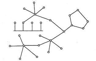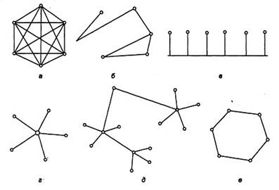 б) ізоляція двох станцій Рисунок 6 - Ізоляція робочих станцій Фізична чарункова топологія. Повнозв'язна топологія характеризується наявністю надмірних зв'язків між пристроями. Наприклад, в дійсній мережі з чарунковою (mesh) структурою існує прямий зв'язок між всіма пристроями мережі (рис.1, а). Для великої кількосі пристроїв така схема виявляється неприйнятною. Більшість повнозв’язних мереж не є чарунковими структурами, а є гібридними повнозв’язними мережами, що містять деякі надмірні зв'язки (але не між всіма вузлами). При збільшенні числа пристроїв складність реконфігурації подібної мережі, як і її інсталяції, збільшується в геометричній прогресії. Основною гідністю мережі із чарунковою структурою є її відмовостійка. Інші переваги включають гарантовану пропускну спроможність каналу зв'язку і те, що такі мережі достатньо легко діагностувати. До недоліків чарункової топології відносяться складність інсталяції і реконфігурації, а також вартість. Змішані топології. Тоді як невеликі мережі, як правило, мають типову топологію - зірка, кільце або загальна шина, для крупних мереж характерна наявність довільних зв'язків між комп'ютерами. У таких мережах можна виділити окремі довільно зв'язані фрагменти (підмережі), що мають типову топологію, тому їх називають мережами із змішаною топологією (рис. 8).