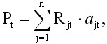 где Pt - стоимостная оценка социальных и экологических результатов осуществления мероприятий в году t; Rjt - величина отдельного результата (в натуральном измерении) с учетом масштаба его внедрения в году t; ajt - стоимостная оценка единицы отдельного результата в году t; n - количество показателей, учитываемых при определении воздействия мероприятия на окружающую среду и социальную сферу.