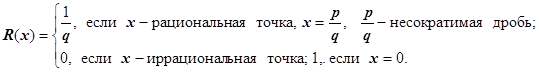 Неравенство Рассмотрим два простых примера. Докажем, что 1. 1. Возьмём "e>0. Требуется найти такое d>0, что 0<| x -2 |<dÞ| x 2-4 |<e, т.е. | (x -2)(x +2) |<e. Договоримся сразу брать d<1, тогда из | x -2 |<dÞ2-d< x <2+dÞ x <3Þ x +2<5. Неравенство | (x -2)(x +2) |<e будет обеспечено, если 2. Возьмём "e>0. Требуется найти такое d>0, что 0<| x -p/6 |<dÞ| sin x -1/2 |<e~ | sin x - sin(p/6)|<e ~ 3. Более сложный пример-функция Дирихле В любой окрестности любого вещественного числа а имеются и рациональные, и иррациональные точки, обеспечить одновременное выполнение неравенств | b -1 |<e и | b -0 |<e при e<1/2 невозможно ни при каком значении b, следовательно, функция Дирихле не имеет предела ни при каком стремлении аргумента. Рассмотрим ещё одно определение предела, эквивалентное предыдущему. Опр.4.4.2. Пусть { xn | xn Î X, xn ¹ a } - последовательность точек области определения функции f (x), сходящаяся к точке а. Если для любой такой последовательности { xn } последовательность значений функции { f (xn)} сходится к числу b, то b называется пределом f (x) при x ® а. (В МГТУ опр.3.4.1 принято называть определением Коши, опр.3.4.2 - определением Гейне). Докажем эквивалентность определений 4.4.1 и 4.4.2. Утв.1. Если Док-во. Пусть { xn } сходится к а, требуется доказать, что { f (xn)} сходится к b, т.е. что для "e>0 $ N: n > N Þ | f (xn)- b |<e (в предположении, что выполняются условия опр. 4.4.1). Возьмём "e>0. $d: 0<| x - a |<d Þ | f (x)- b |<e. Так как xn ® а при n ®µ, то $ N: n > N Þ | xn - a |<dÞ | f (xn)- b |<e. Нужное N найдено. Утв.2. Если Док-во от противного. Мы предположим, что требования опр. 4.4.1 не выполняются, и построим последовательность { xn }, сходящуюся к а, для которой { f (xn)} не сходится к b. Если требования опр. 4.4.1 не выполняются, то $e>0, для которого в любой проколотой d-окрестности точки а найдётся точка x, в которой | f (x)- b |>e. Возьмём d1=1. $ x 1¹ а: 0<| x 1- a |<d1, но | f (x 1)- b |>e. Возьмём d 2 <min{1/2, | x 1- a |}. $ x2: 0<| x 2- a |<d 2, но | f (x 2)- b |>e. Возьмём d 3 <min{1/3, | x 2- a |}. $ x 3: 0<| x 3- a |<d 3, но | f (x 3)- b |>e. Вообще на n -ом шаге возьмём d n <min{1/ n, | xn -1- a |}. $ xn: 0<| xn - a |<d n, но | f (xn)- b |>e, и т.д. Мы получили, что xn ® а при n ®µ (так как | xn - a |<1/ n), но | f (xn)- b |>e, т.е. { f (xn)} не сходится к b. Противоречие получено. Рассмотрим ещё два примера. 4. 5. Функция Римана Как следует из графика, приведённого на стр.17, в любой e-окрестности точки
