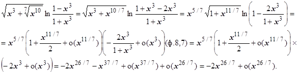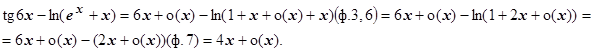 Выделение главной части функции - мощный приём при решении задач на вычисление пределов. Основная цель выделения главной части - получение более простой функции, которая в окрестности предельной точки ведёт себя также, как исходная громоздкая (тогда по теореме 4.4.9.2 о замене бесконечно малых на эквивалентные мы можем заменить громоздкие функции в числителе и знаменателе на эквивалентные простые); основной инструмент при выделении главных частей - табл. 4.4.10 эквивалентных бесконечно малых. Как следует из определений разделов 4.4.8-4.4.11, утверждения "при х ® а 1. f (x)~ g (x); 2. f (x)- g (x)=o(g (x)) =o(f (x)); 3. g (x) есть главная часть f (x)" эквивалентны. Так как для f (x) может существовать бесконечно много главных частей при х ® а (например, при х ®0 1. 2. 3. 4. 5. f (x) ~ Таким образом, в простейших случаях рецепт для выделения главной части вида С0(х - а)k БМ при х ® а функции f (x) состоит в следующем: f (x) надо представить в виде f (x)= Аналогично изложенному выше, с заменой (х - а)k на Рассмотрим ряд примеров на выделение главной части и определение порядка малости функций (в скобках указываются применённые формулы табл. 4.4.10): 1. 2. 3. 4. 5. В следующих задачах решение излагается более кратко. 6.