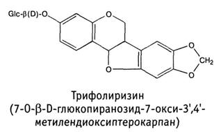 К изофлавоноидам также относится достаточно специфическая группа соединений – птерокарпаны, образованные замыканием связи между орто -положением кольца В и карбонильным кислородом, при этом возникает дополнительный пятичленный цикл. Примером может служить трифолиризин, найденный в стальнике полевом.