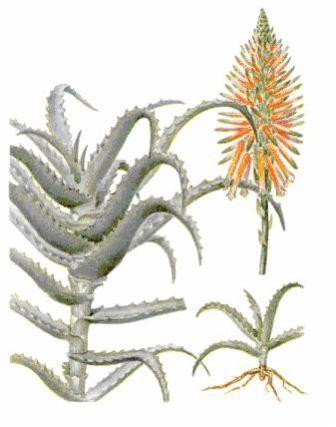 Другие названия: столетник Ботаническая характеристика. Вечнозеленое суккулентное древовидное растение, широко культивируемое в комнатной и оранжерейной культуре. Листья очередные, мясистые, сочные, стеблеобъемлющие, мечевидные, длиной от 20 до 65 см. С верхней стороны листья вогнутые, снизу – выпуклые, по краю шиповато-зубчатые. Цветки красные и фиолетовые в кистевидном соцветии (рис. 9.3).
