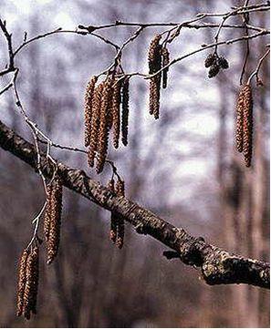 Рис. 9.21. Ольха серая - Alnus incana (L.) Moench Распространение. Ольха серая и о. клейкая распространены в лесной и лесостепной зонах европейской части страны, на Урале, заходят в Западную Сибирь. Имеются отдельные местонахождения на Кавказе. Местообитание. По лесным опушкам, берегам рек, ручьев, оврагам, окраинам болот. Ольха серая образует кустарниковые заросли. Оба вида влаголюбивые растения. Заготовка. Сырье собирают в осенне-зимний период (до начала марта). Нижние короткие ветви вместе с соплодиями срезают секаторами или отряхивают деревья; «шишки» хорошо заметны на снегу. Охранные мероприятия. Не разрешается ломать ветви и обрывать с них соплодия ольхи. Сушка. На чердаках или под навесами, а также в воздушных сушилках. Сырье раскладывают тонким слоем, периодически перемешивая.
