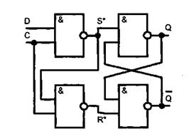 Рисунок 22 - Схемы тактируемых триггеров Синхронный D -триггер функционирует таким образом, что при С= О он сохраняет свое состояние, а при С = 1 работает как асинхронный D -триггер. Если вход D соединить с выходом Q триггера, то D -триггер работает как счетный триггер, однако, поскольку схема содержит только одну запоминающую ячейку, счетный триггер на базе данного D -триггера может управляться только импульсом. Структура D -триггера приведене на рисунке 23.