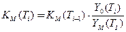 При поступлении на вход,,Запись tисх.” единичного управляющего импульса, по его переднему фронту происходит сброс содержимого счётчика 34 и в него заносится значение tисх. По заднему фронту управляющего импульса содержимое счётчика фиксируется в буферной памяти 36. Выходные сигналы объекта YО и модели YМ фильтруются от высокочастотных помех фильтрами 25 и 26, после чего обрабатываются дифференциаторами 27, 28 для исключения влияния уровня установившегося значения сигналов YО, YМ. Если модуль скорости изменения какого – либо из этих сигналов, выделяемый алгоритмами 29 превышает порог, заданный в алгоритмах 30, происходит переключеие соответствующего триггера 31 в единичное состояние. Анализ состояния триггеров производит дешифратор, управляющий реверсивным счётчиком 34 и реализованный на четырёх первых элементах 2И алгоблока 33. Пусть в единичное состояние переключился верхний по схеме триггер 31, то есть tО < tМ. Тогда на выходе первого элемента 2И а.б. 33 появится единичный сигнал, окрывающий ключ на третьем элементе 2И и разрешающий поступление импульсов с мультивибратора 32 на вход СМ счётчика 34. Уменьшение содержимого счётчика будет происходить до переключения в единичное состояние второго триггера 31, так как при этом сигнал на выходе первого элемента 2И станет равным 0 и закроет ключ на третьем элементе 2И а.б. 33. Таким образом, содержимое счётчика уменьшится на величину разности Dt = tМ – tО и станет равным tО . Если вначале в единичное состояние переключится второй триггер 31, то есть tО > tМ, содержимое счётчика возрастёт на величину Dt = tО – tМ.