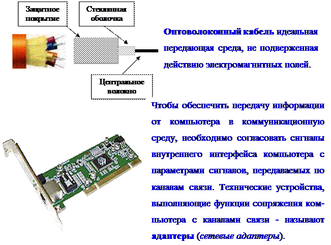 Усложнение производственных задач повышает требования к процессам управления вообще и к информационным системам (обслуживающим эти процессы), в частности. В данных условиях все более актуальными становятся скорость и удобство обмена информацией, а также возможность непосредственного взаимодействия всех участвующих в процессе выработки управленческих решений. Появление ПК дало возможность нового подхода к организации систем обработки данных, к созданию новых информационных технологий, к переходу от использования отдельных ЭВМ (в системах централизованной обработки данных) к распределенной обработке (обработка данных, выполняемая на независимых, но связанных между собой компьютерах). Компьютерная сеть (новая информационная технология) - это совокупность компьютеров, между которыми возможен информационный обмен без посредства промежуточных носителей информации. Для создания сети входящие в нее компьютеры должны быть связаны каналами передачи информации – каналами связи, а на компьютерах – установлено специальное программное обеспечение, организующее работу в сети - программы управления сетью. Технология работы в сети и возникающие при этом возможности зависят как от способов организации каналов связи, так и от программного обеспечения. Заметим, что наряду с компьютерными сетями, существуют сети терминалов, или терминальные сети. Примерами таких устройств могут служить сеть банкоматов, сеть кассовых аппаратов в магазинах и т.д. Хотя терминальные сети достаточно распространены, строятся они на совершенно иных, чем компьютерные сети, принципах. Каналы связи. Обмен информацией между компьютерами может осуществляться с использованием различных каналов связи. Последние различаются по физическому принципу реализации и (в зависимости от этого) характеризуются скоростью передачи информации, а также надежностью передачи информации. В современных компьютерных сетях используются проводные и беспроводные каналы связи (радиоканалы, инфракрасное излучение). В проводных каналах (более распространенных) возможна передача электрических импульсов по выделенной «витой паре», коаксиальному кабелю, по телефонным линиям связи (и даже по силовым линиям электросети), а также по оптоволоконному кабелю.
