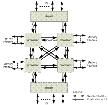 Последовательная кэш-когерентная шина типа точка-точка для соединения процессоров между собой и с чипсетом.
