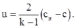 Величину константы определяем из граничных условий на фронте волны uн= 0, c = cн (см. рис. 3.7б)