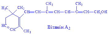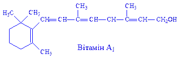 Жиророзчинні вітаміни не розчиняються у воді, але розчиняються в органічних розчинниках, термостабільні, стійкі до зміни рН середовища, можуть частково депонуватися в тканинах людського і тваринного організмів. Найчастіше виконують пластичні функції – беруть участь у формуванні структури і функціях клітинних мембран, рості і розвитку ембріонів (вітамін E), утворенні і регенерації кісткової (вітамін D) і епітеліальної (вітамін А) тканин, у процесах зсідання крові (вітамін К). Жиророзчинні вітаміни зазвичай не синтезуються в організмах людини і тварини. До цієї групи вітамінів належать вітаміни А, D, E, К, F і УХ. Вітамін А. Дія вітаміну була відома задовго до нашої ери. На способи запобігання авітамінозу вказував ще Гіппократ (460 – 377 до н.е.). Спочатку вітамін був відкритий у молоці і названий як активний початок вершкового масла і риб’ячого жиру „розчинний в жирах чинник А”. Тільки в 1916 р. він отримав назву вітамін А. Гіпо- і авітамінози. При недостатній кількості вітаміну А в раціоні сповільнюється ріст і розвиток, порушується структура покривних тканин – ороговіває епітелій. У людини і тварин порушується діяльність слізних залоз, виникає сухість рогівки ока (ксерофталмія), розм’якшується і дегенерує рогівка (кератомаляція), слабшає, особливо в темноті, і зникає зір (гемералопія). Порушується регенерація і відбувається розпад епітелію шкіри (дерматити), харчового каналу (виникає коліт), дихальних шляхів (бронхіти), у самок ороговіває епітелій піхви (кератити) і запалюється слизова оболонка сечовивідних шляхів (пієліти, утворюється вторинне ниркове каміння). До недостатньої кількості вітаміну в раціоні особливо чутливі молоді організми: діти, телята, поросята і курчата. При цьому у курчат різко збільшуються розміри залозистого шлунку, порушується його евакуаторна і секреторна діяльність, що призводить до зменшення продуктивності і летального результату. Гіпервітаміноз. При надлишку в раціоні вітаміну А або каротиноїдів виникає інтоксикація організму, з’являються судоми, парези, паралічі, втрата шерсті у тварин (навкруги рота і на шиї). Стоншування і переломи довгих трубчастих кісток, різні крововиливи (геморагії), кон’юнктивіти, риніти, ентерити, набряк мозку, може бути летальний результат. Хімічна будова і властивості. Група вітаміну А включає декілька вітамінів, головними з яких є вітамін A1 (ретинол) і вітамін А2 (дегідроретинол). Хімічна будова цих вітамерів (різні форми одного і того ж вітаміну) вельми схожа. Всі вони в основі молекули мають b-іононове кільце, сполучене бічним ланцюгом з двома залишками ізопрена із спиртовою групою: