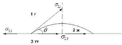 К выводу уравнения Юнга: 1- газ, 2- жидкость, 3- твердое тело. Поверхностная энергия твердого тела стремится уменьшиться, растягивая каплю по поверхности, она равна Если рассматривать