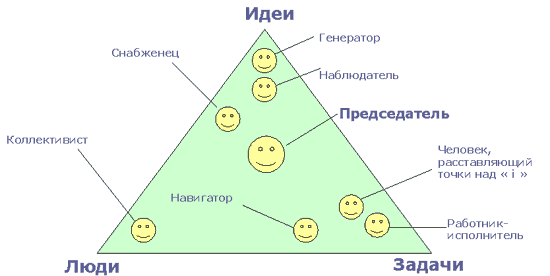 В течение слишком многих лет поиск удачного руководства практически полностью сводился к поиску подходящего кандидата. Компании были заинтересованы только в квалификации, опыте и достижениях отдельных кандидатов. И тем не менее каждый из нас в глубине души знает, что невозможно найти идеального кандидата для данной конкретной работы. Его нельзя найти, потому что его не существует. Большинство менеджеров имеют склонность к подбору команды из самых умных и талантливых людей, которых они могут найти. К сожалению для них, команда с наихудшим прогнозом состоит исключительно из очень умных людей. Все попытки перечислить качества хорошего менеджера показывают, что их не существует в природе: слишком много качеств взаимно исключают друг друга. Менеджеры должны быть высокоинтеллектуальными людьми, и в то же время не чересчур умными, должны быть напористыми и чуткими к чувствам других людей, должны уметь хорошо поддерживать разговор и слушать, быть решительными и терпеливыми, и т.п. Если ни один человек не обладает всеми этими качествами, то команда людей, безусловно, может – и часто сочетает такие качества. Командные роли были предметом изучения доктора Белбина. Результаты показывают, что ему удалось выделить и идентифицировать в общей сложности только восемь ролей, которые могут взять на себя члены команды. Уникальной лабораторией служил Колледж административных служащих г. Хенли (Оксон, Великобритания). По мере проведения своих исследований, сначала в Хенли, а затем в реальном мире бизнеса от Британии до Австралии, д-р Белбин и его коллеги научились определять индивидов, которые оказывали существенное влияние на команду, и их командным ролям он дал названия и описания. Причины, по которым д-р Белбин дал такие названия, не всегда очевидны, и сами названия нередко вводят в заблуждение, однако представляется целесообразным их использовать с оговоркой, что важны именно описания, а не сами названия. Не все из обследованных и протестированных участников принадлежали к одному из восьми типов; приблизительно 30% не попадали четко ни в одну категорию. Необходимо заметить, что техника построения рабочих групп на основе сбалансированности ролей не имеет важного значения для тех видов деятельности, процессы которой происходят постепенно, медленно и не требуют нововведений. Но если группа работает в условиях стремительно изменяющегося окружения, что касается рабочей силы, производственных процессов, продукции, рынков и цен, где постоянно присутствует конкуренция, давление и необходимость найти быстрое решение, в этом случае наличие сбалансированных факторов, необходимых команде, имеет первостепенное значение. Первый (социальный) тип лидера - разрабатывает стратегическое видение, интегрирует и координирует усилия команды на достижение целей проекта с помощью своей способности найти для каждого ее члена соответствующую роль для достижения цели. Стабильный, склонный к доминированию, экстраверт. Председатель – это одно из тех названий, которые вводят в заблуждение, поскольку председатель часто может не быть лидером команды; тем не менее, председатель лучше всего подходит именно для командного лидерства. Председатель стоит во главе команды и координирует ее усилия по достижению внешних целей и задач. Его можно отличить по тому, ч