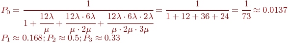 Для упрощения вычислений примем . Тогда для этой схемы "гибели и размножения" по зависимостям (2.2) имеем: