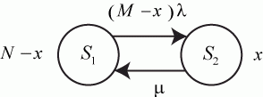 Часто встречаются системы, у которых поток входных заявок зависит от количества заявок, находящихся в обслуживании. Такие СМО называют замкнутыми(иначе - разомкнутыми). Например, работа мастерской связи объединения может быть представлена моделью замкнутой СМО. Пусть эта мастерская предназначена для обслуживания радиостанций, которых в объединении . Каждая из них имеет интенсивность отказов. Входной поток отказавшей аппаратуры будет иметь интенсивность :