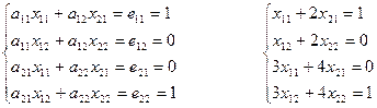 M11=4; M12= 3; M21= 2; M22=1 x11= -2; x12= 1; x21= 3/2; x22= -1/2 Таким образом, А-1=