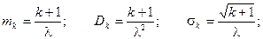 Математическое ожидание, дисперсия и среднее квадратическое отклонение для распределения Эрланга находятся по формулам:
