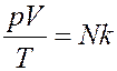 Для данной массы газа N = const, поэтому правая часть уравнения (2) будет тоже постоянная величина для данной массы газа. Тогда из (2) следует, что для данной любой массы газа будет выполняться соотношение