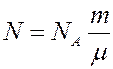 где N – число молекул в массе газа m, μ –молярная масса, N А - число Авогадро. Из (3) получим