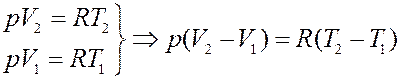 Запишем уравнения Клапейрона-Менделеева для двух состояний газа с учетом того, что ν = 1моль и вычтем из второго первое