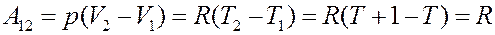 Универсальная газовая постоянная численно равна работе расширения, которую выполняет 1 моль газа при его нагревании на 1K при постоянном давлении.
