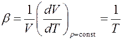 Отсюда следует, что коэффициент объемного расширения идеального газа равен обратной величине абсолютной температуры. Так при 0оС он равен