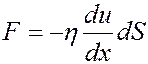 Из (5) видно, что знак минус показывает, что импульс переносится в направлении уменьшения скорости слоев. Согласно II закону Ньютона изменение импульса в единицу времени равно действующей силе: