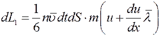 За это же время из площадки dS слоя, скорость которого равна u, вылетит такое же количество молекул и вправо и влево. Но так как скорости этих молекул одинаковые, равные u и направлены в разные стороны изменение импульса слоя при этом будет равно нулю. С учетом этого импульс, который перенесется через площадку dS в положительном направлении оси x, равен: