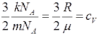 где mNA = μ – молярная масса, cV – удельная теплоемкость газа при постоянном объеме. С учетом этого из (12) получим: