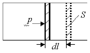 К внутренней энергии также относится внутриядерная энергия, эйнштейновская энергия покоя E o= mc 2. Однако в большинстве задач термодинамики эти виды энергии остаются постоянными. На них можно не обращать внимания, так как в термодинамике важно не абсолютное значение внутренней энергии, а ее изменение, которое происходит в разных процессах. Очевидно, что внутренняя энергия однозначно является функцией параметров состояния. Если система в результате каких-либо процессов, в которых изменяются ее параметры состояния, возвратилась в первоначальное состояние, то при этом изменение внутренней энергии равно нулю Δ U = 0. С математической точки зрения это означает, что внутренняя энергия является полным дифференциалом функции параметров состояния. Следовательно, изменение внутренней энергии при переходе системы из одного состояния в другое всегда будет равно разности внутренних энергий в этих состояниях, и не будет зависеть от вида процесса перехода системы из одного состояния в другое. В природе, на практике ТДС взаимодействуют между собой, при этом изменяются их параметры состояния, их внутренние энергии. В зависимости от формы передачи энергии взаимодействия делятся на тепловые и адиабатные. Адиабатным взаимодействием называется обмен энергиями между системами, происходящий вследствие выполнения макроскопической работы. Макроскопическая работа выполняется при изменении внешних параметров и не связана с теплопередачей. Физическая величина, равная энергии, которой системы обмениваются при адиабатном взаимодействии, называется работой. Найдем элементарную работу, которую выполняет газ при расширении, перемещая поршень в цилиндре (рис.1).